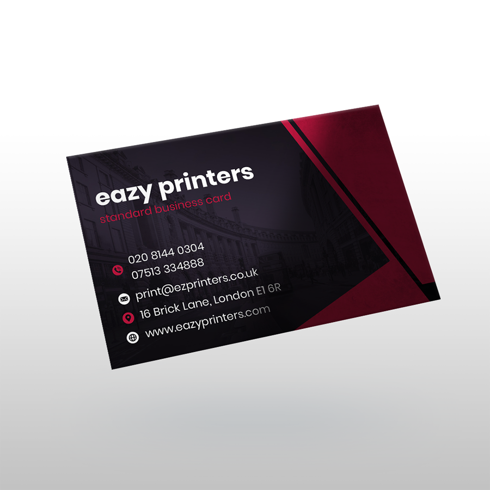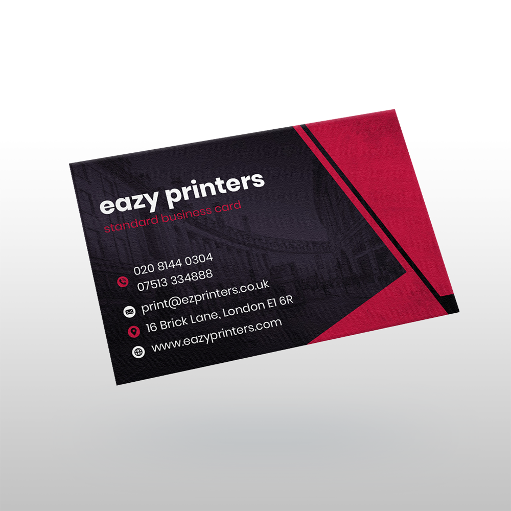 Our Standard Business Cards are printed on either 350gsm or 450gsm silk, which offers a smooth and luxurious feel. Choose between single-sided or double-sided printing and personalise your cards with a variety of lamination options, including matt, gloss, soft-touch, anti-bacterial, and eco-friendly finishes.